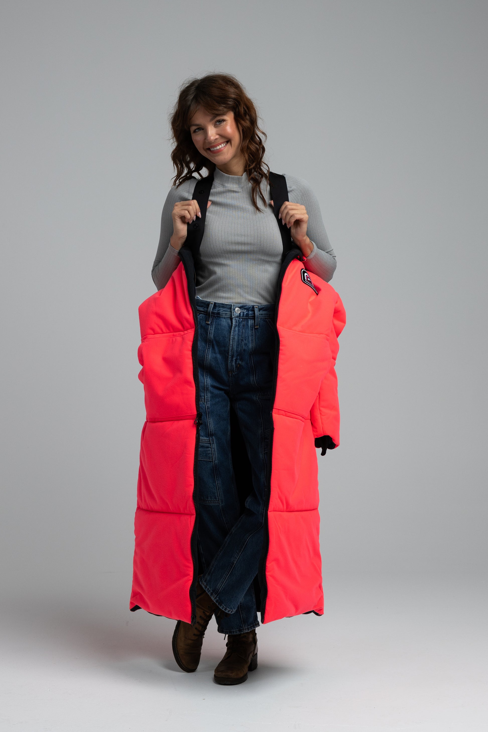 Deano’s Original Parka is here to stay! Made from 100% polyester with 100% polyester fleece insulation, its durable, versatile fabric does more than just wrap our customers in a “bear hug” to keep them warm. The Parka is designed for a relaxed fit that accommodates a range of body types. This jacket offers both functionality and comfort year-round, perfect for layering over winter clothes, doubling as a blanket, a sleeping bag and more.